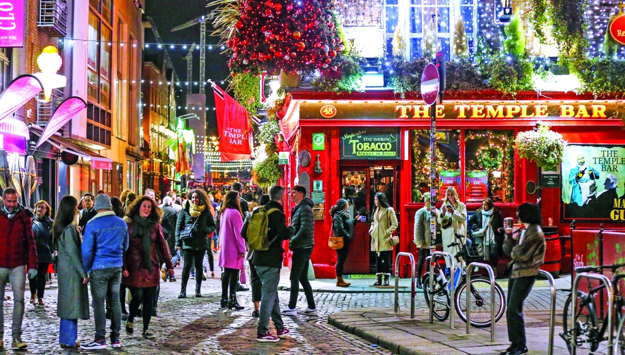 People out socialising in Temple Bar in Dublin city center late into the evening following the easing of coronavirus restrictions across Ireland, Saturday, Jan. 22, 2022. (Damien Storan/PA via AP)