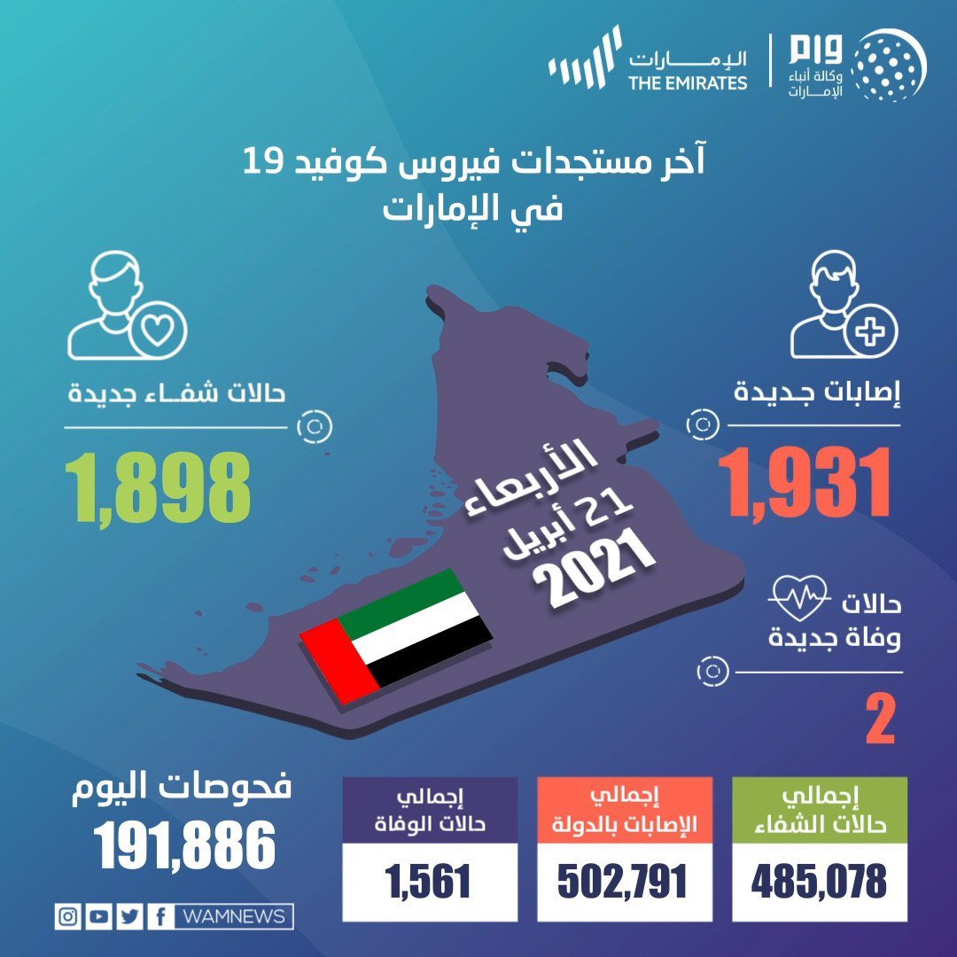 Home الأخبار الإمارات تسجل 1931 إصابة جديدة بفيروس كورونا و1898 حالة شفاء