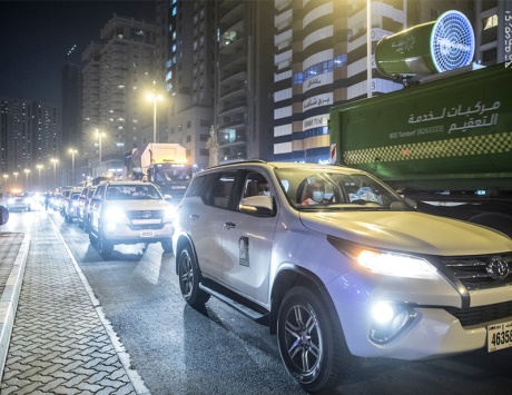 وانطلقت المسيرة من مسجد النور بالشارقة، وحطت بمحطتها الأخيرة في مقر مسرح المجاز، بمشاركة أكثر من 200 آلية، ومركبة، شكراً وتقديراً لفرق العمل، التي ساهمت في نجاح البرنامج الوطني للتعقيم.