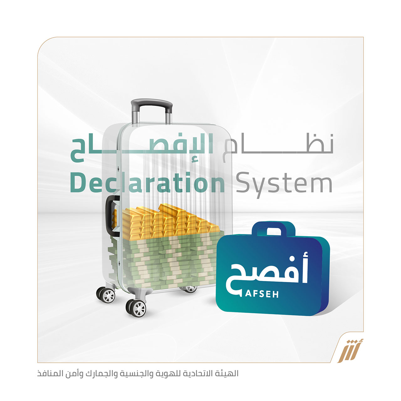 ودعت المسافرين والمغادرين إلى الاستفادة من منظومة الخدمات الالكترونية التي وفرتها لتسهيل وتسريع إجراءات الإفصاح، من بينها نظام “أفصح”، والذي يمنح كل فرد من أفراد الأسرة الواحدة ممن هم فوق 18 عاماً، أثناء سفرهم من وإلى الدولة حمل ما لا يزيد قيمته عن 60 ألف درهم أو ما يعادلها من العملات الأجنبية دون الإفصاح عنها، بينما يجب الإفصاح عما زاد عن الحد المذكور.
