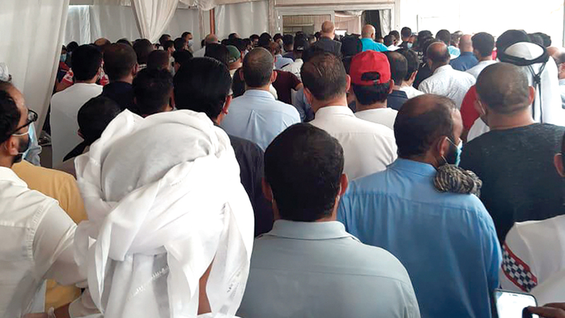 وتفصيلاً، شهد مركز الفحص بتقنية «دي بي آي» المبنية على الليزر في منطقة سيح شعيب، منذ مساء أول من أمس، توافد مئات من الراغبين في إجراء الفحص لدخول إمارة أبوظبي، ما تسبّب في وجود زحام شديد داخل خيمة الانتظار، الأمر الذي يتعارض مع الإجراءات الاحترازية للحد من انتشار فيروس كورونا.