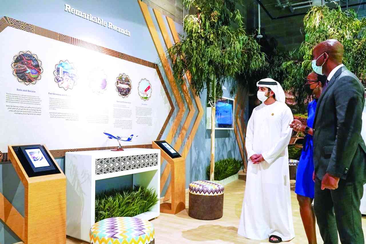 كما زار سمو الشيخ حمدان بن محمد بن راشد آل مكتوم جناح دولة رواندا، المستوحى من تاريخها والمُقام في «منطقة الفرص»، ويعكس مضمونه رحلة شعب رواندا من فترات مضت حافلة بالتحديات إلى الغد المشرق الذي يمضي إليه بكل التسامح لتجاوز صعاب الماضي، في حين جاء تصميم الجناح للتعبير عن هذه الرحلة من خلال مراحل اليوم المختلفة بدءاً من الغسق ومن ثم ظلمة الليل والتي تعبر عن أهوال الحرب التي عانتها رواندا في عام 1994، ومن بعدها ظهور ضياء الفجر إيذاناً بميلاد عهد جديد حافل بالأمل ويليه النهار بكل ما يحفل به من اجتهاد وعمل من أجل حياة أفضل.