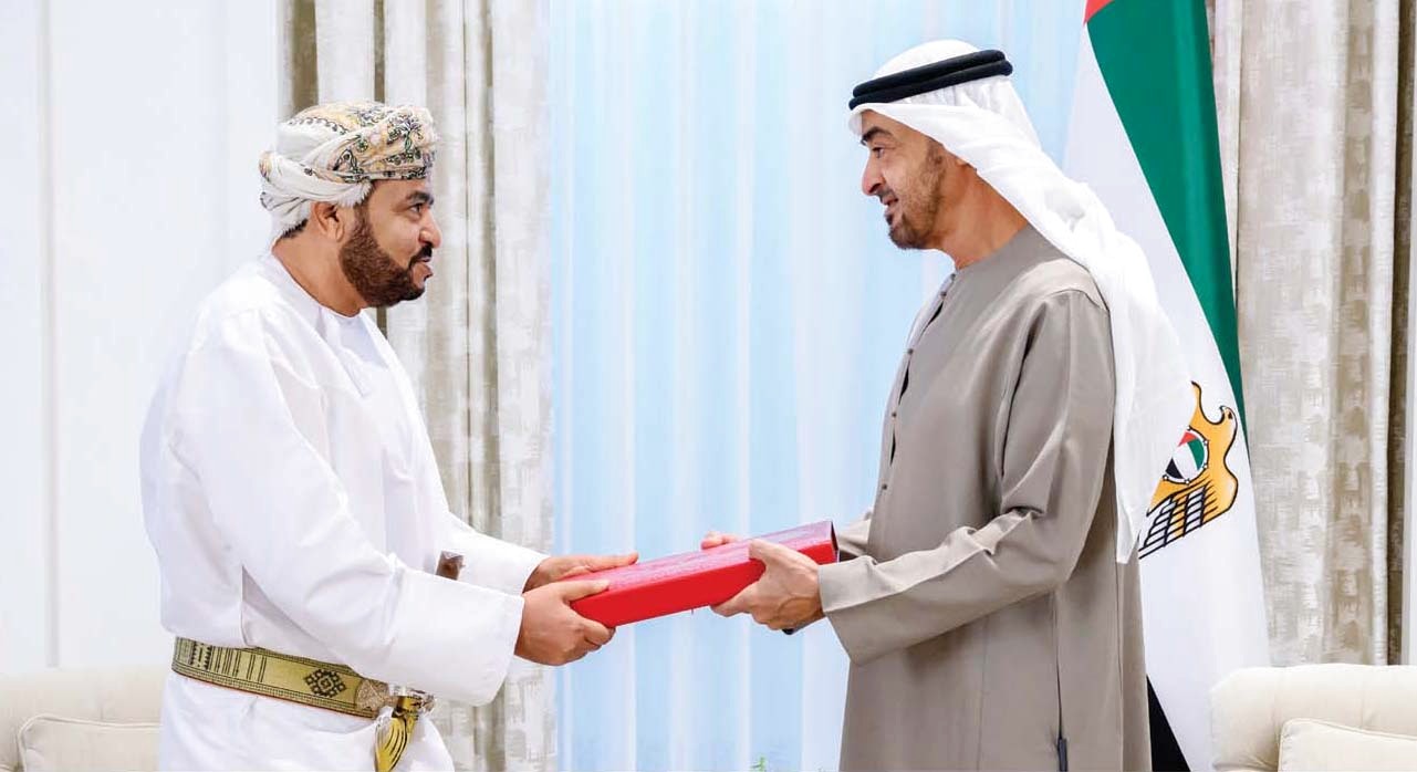 تسلم صاحب السمو الشيخ محمد بن زايد آل نهيان رئيس الدولة، حفظه الله، أمس، رسالة خطية من أخيه السلطان هيثم بن طارق بن تيمور آل سعيد سلطان عمان الشقيقة، تتصل بالعلاقات الأخوية المتينة بين البلدين الشقيقين والموضوعات ذات الاهتمام المشترك.