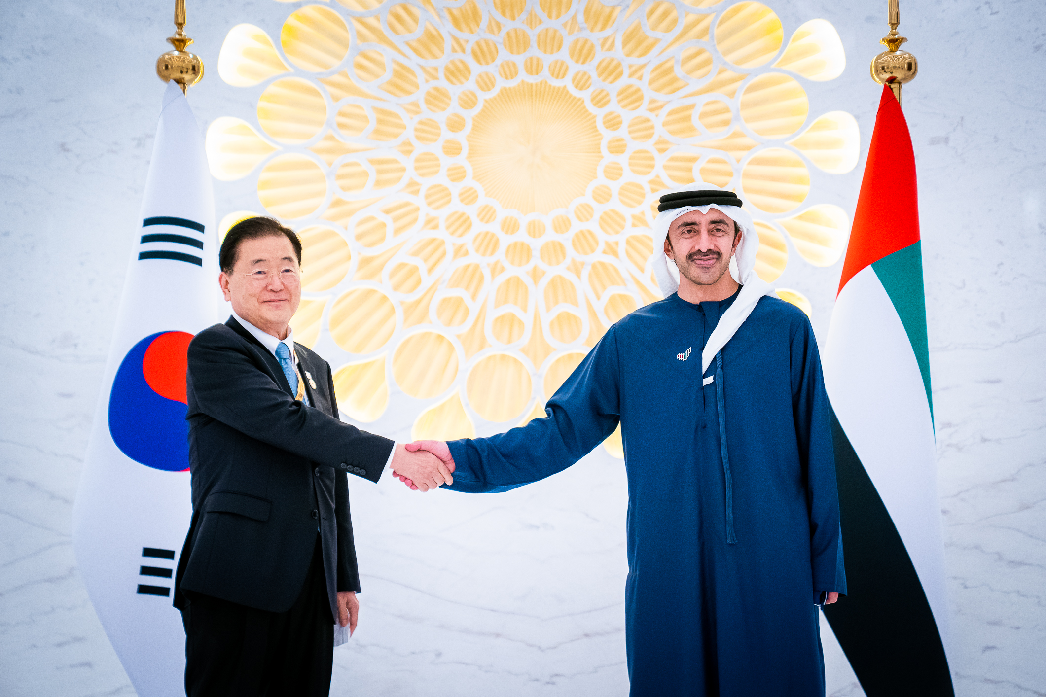 عبدالله بن زايد يستقبل وزير خارجية كوريا الجنوبية في إكسبو 2020