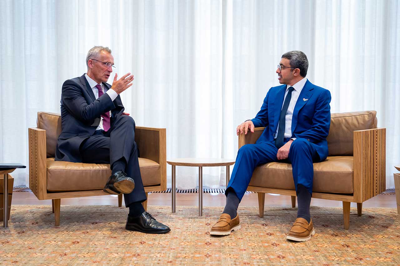 التقى سمو الشيخ عبدالله بن زايد آل نهيان وزير الخارجية والتعاون الدولي معالي ينس ستولتنبرغ الأمين العام لحلف شمال الأطلسي ” الناتو”.