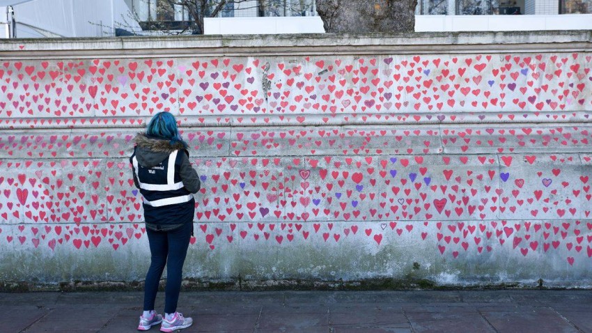 على طريقة حائط برلين، والجداريات الشهيرة، رسم البريطانيون أكثر من 150 ألف قلب أحمر على جدار يواجه نهر التيمس في لندن، تخليداً لضحايا «كوفيد-19.»