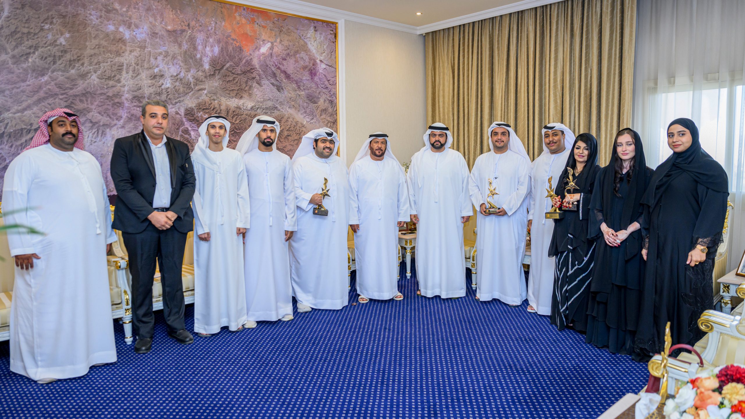 جاء ذلك خلال لقاء سموه، في مكتبه بالديوان الأميري، فريق مسرحية “العالم الآخر” العمل الفائز في مهرجان الإمارات لمسرح الطفل بـ4 جوائز، برئاسة عبدالله الظنحاني رئيس مجلس إدارة جمعية دبا للثقافة والفنون والمسرح.