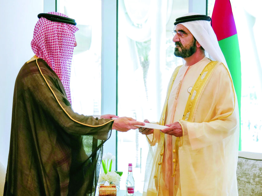 محمد بن راشد يتسلم رسالة لرئيس الدولة من خادم الحرمين تتصل بتعزيز العلاقات الثنائية