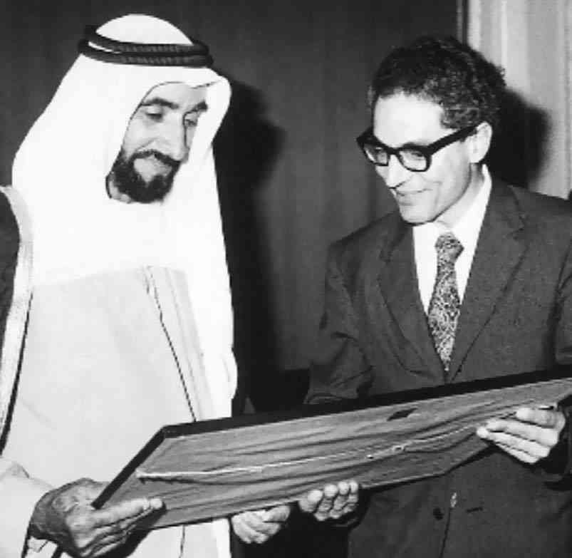 وتابع: إن اللقاء الثاني مع المغفور له كان في العام 1975، وكان برفقته رائد الفضاء «جيمس اروين»، الذي سار على سطح القمر في رحلة «أبوللو 15»، مشيراً إلى انبهارهم الكبير باهتمام الشيخ زايد للتعرف على تفاصيل الرحلة إلى القمر، وسؤاله عن كيف كان يعيش الرواد وطريقة أكلهم وتنفسهم، وما إلى ذلك من تفاصيل، قليلون من فكروا فيها غير المغفور له، وأنه بعد انتهاء أسئلته عن هذه التفاصيل، قام بإهدائه صورة فريدة للأرض من مدار الرحلة تظهر وكأنها «هلال» في سماء القمر الداكنة، وواصل: إن اللقاء الثالث بينهما كان في عام 1976، وشاركه في هذه الزيارة 3 من الرواد الأمريكيين لرحلة «أبوللو سيوز الأمريكيةـ الروسية المشتركة»، وأن الشيخ زايد أسعده حينها كثيراً أنهم أهدوه مجسماً لمكوك الفضاء، الذي كانت تعده «ناسا» لكل رحلاتها المستقبلية عندئذ، حيث شرحوا للمغفور له كيفية عمله.